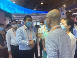 湖南省政府領導、其他各省市地區領導分别到訪湖南展廳,并駐足我司展台前與趙行之副總親切交談。